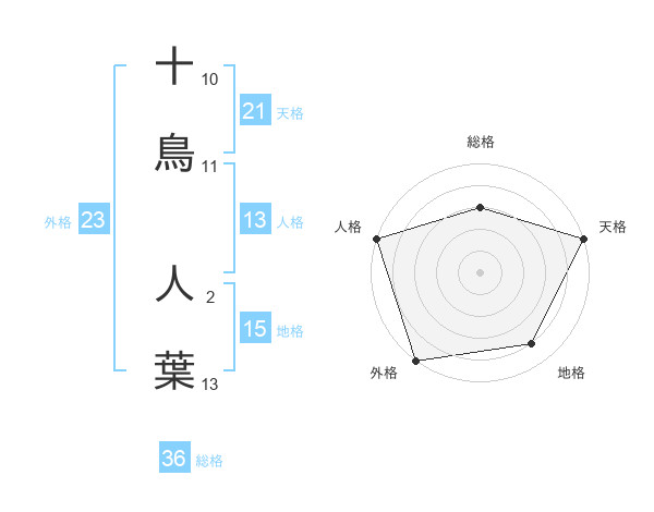 十鳥 人葉さんの天格は21画の5点!