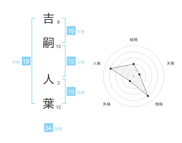 吉嗣 人葉さんを姓名の画数から五運を鑑定