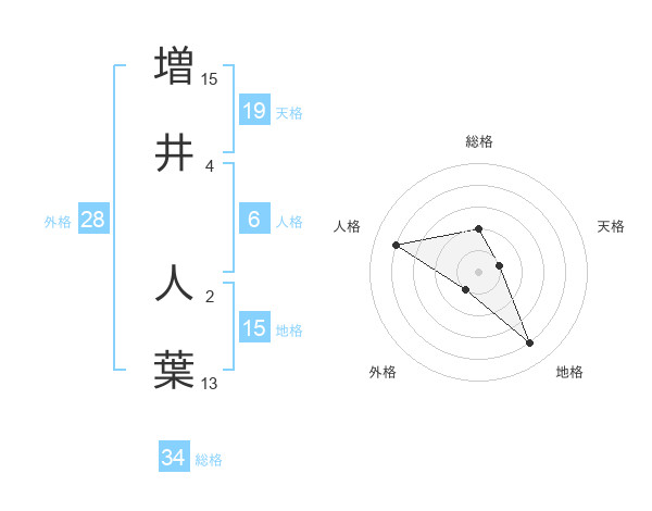 増井 人葉さんの総格は34画の2点!