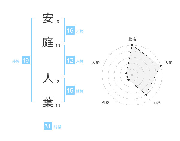 安庭 人葉さんを姓名の画数から五運を鑑定