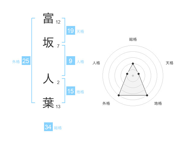 富坂 人葉さんの総格は34画の2点!