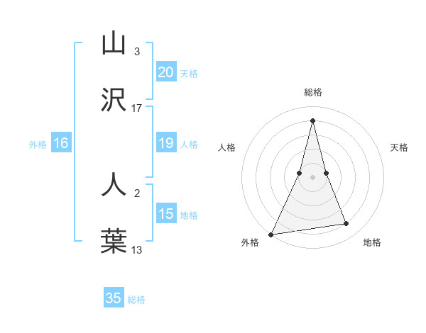 山沢 人葉さんを姓名の画数から五運を鑑定