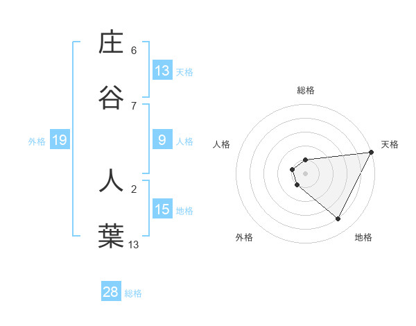 庄谷 人葉さんの天格は13画の5点!