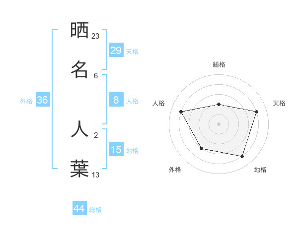 晒名 人葉さんを姓名の画数から五運を鑑定