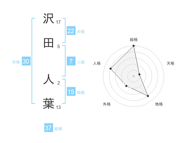 沢田 人葉さんの総格は37画の5点!