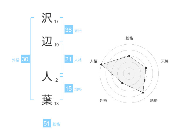 沢辺 人葉さんの総格は51画の3点!