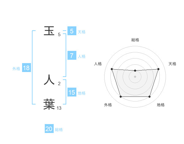 玉 人葉さんの総格は20画の1点!
