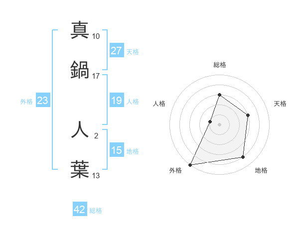 真鍋 人葉さんを姓名の画数から五運を鑑定