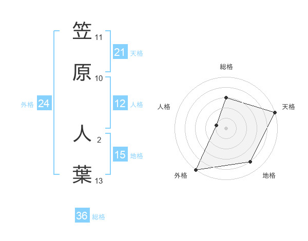 笠原 人葉さんを姓名の画数から五運を鑑定