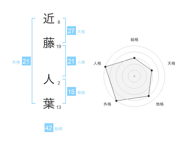 近藤 人葉さんを姓名の画数から五運を鑑定