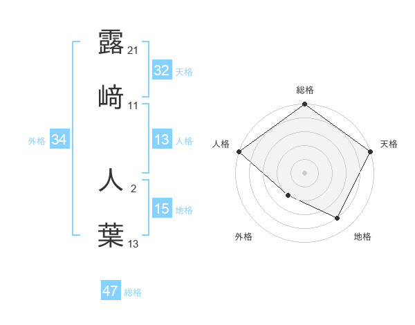 露﨑 人葉さんを姓名の画数から五運を鑑定