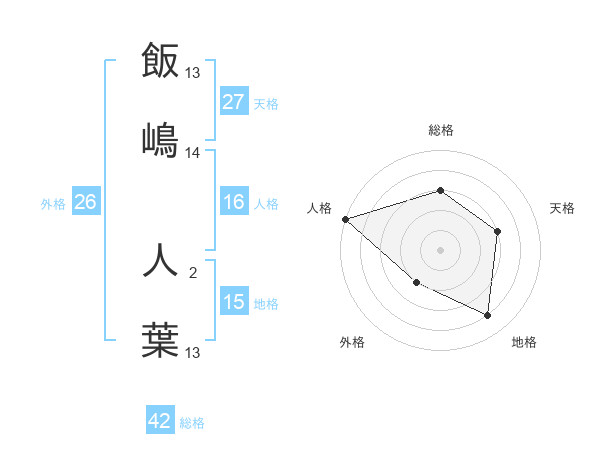 飯嶋 人葉さんを姓名の画数から五運を鑑定