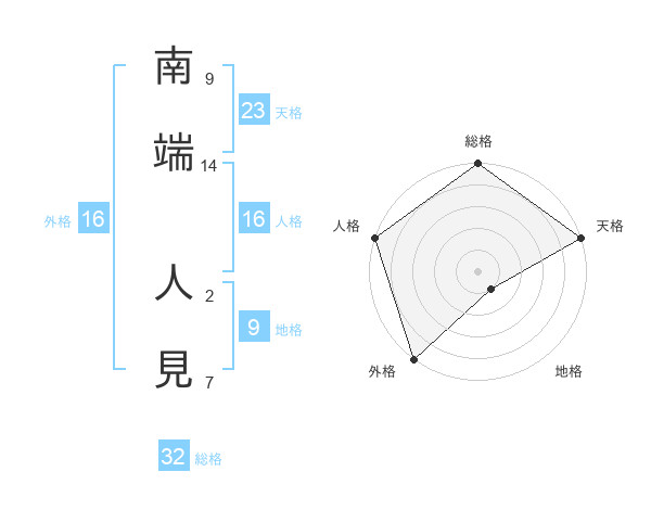 南端 人見さんの総格は32画の5点!