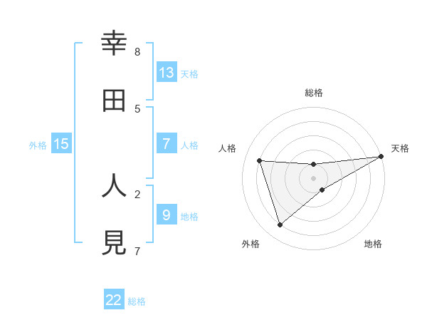 幸田 人見さんの総格は22画の1点!