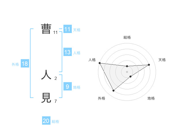 曹 人見さんの総格は20画の1点!