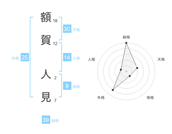 額賀 人見さんの総格は39画の5点!