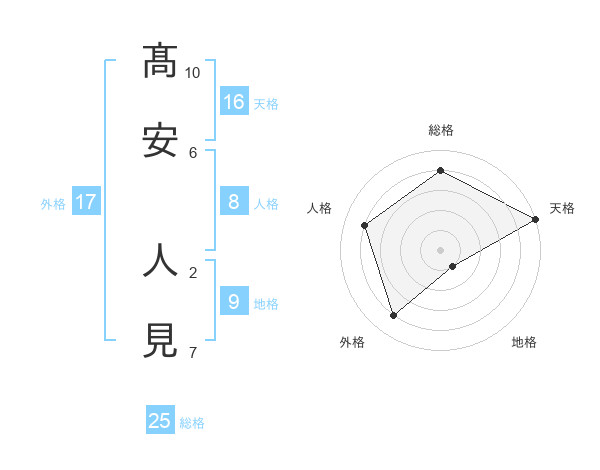 髙安 人見さんの総格は25画の4点!