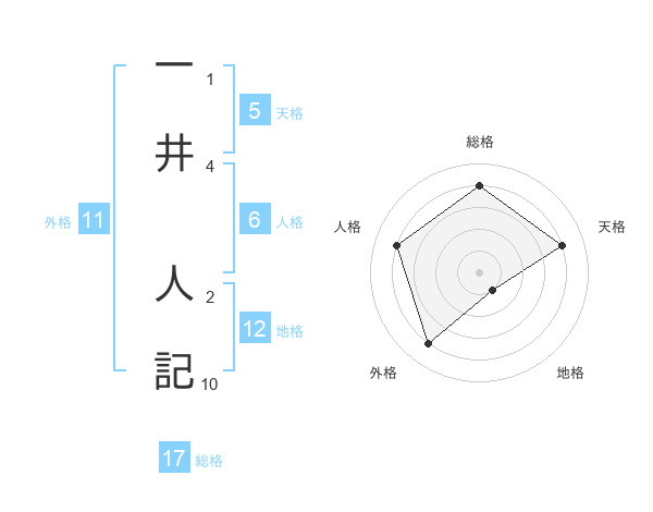 一井 人記さんの総格は17画の4点!