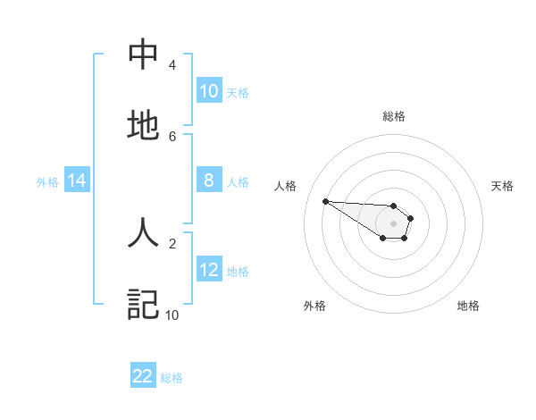 中地 人記さんの総格は22画の1点!