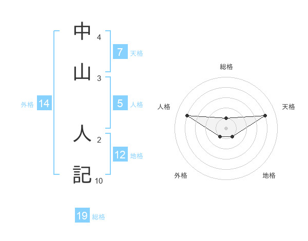 中山 人記さんの総格は19画の1点