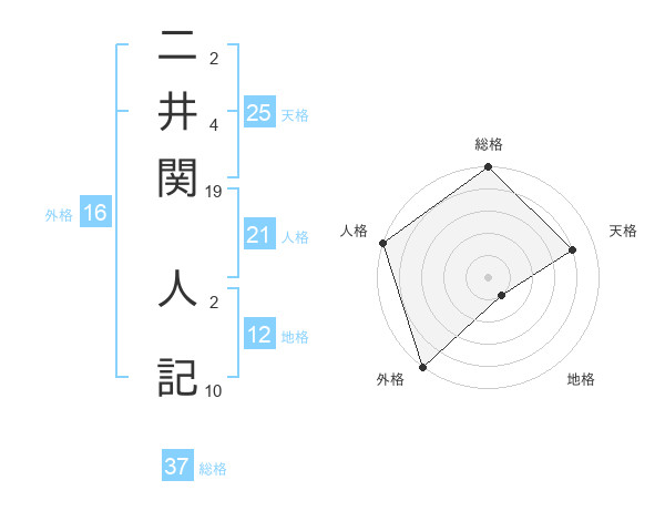 二井関 人記さんの総格は37画の5点!
