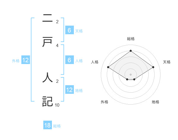 二戸 人記さんの総格は18画の4点!