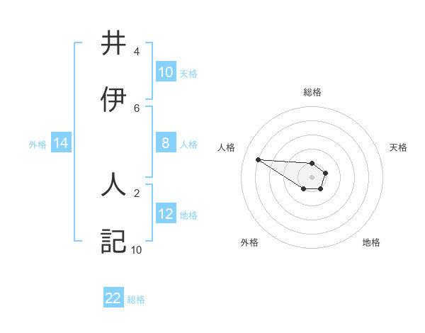 井伊 人記さんの総格は22画の1点!