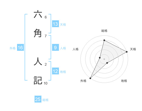 六角 人記さんの総格は25画の4点!
