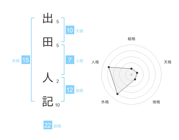 出田 人記さんの総格は22画の1点!
