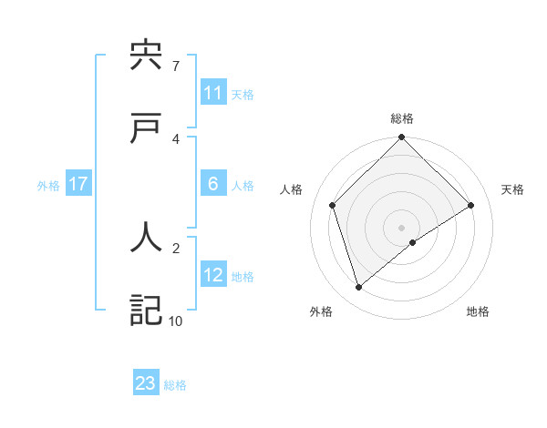 宍戸 人記さんを姓名の画数から五運を鑑定