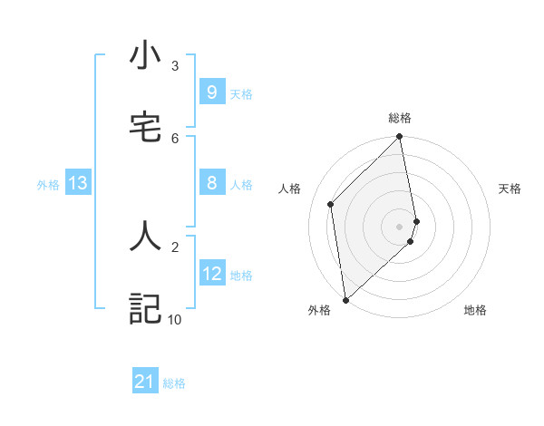 小宅 人記さんの総格は21画の5点!