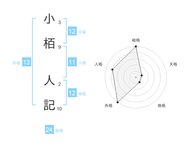 小栢 人記さんの外格は13画の5点!