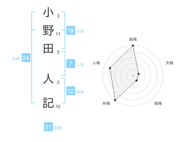 小野田 人記さんの総格は31画の5点!