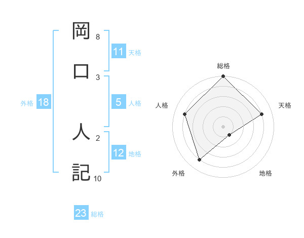 岡口 人記さんの総格は23画の5点!