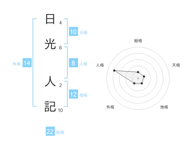 日光 人記さんの総格は22画の1点!