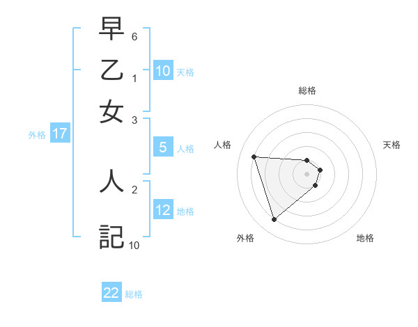 早乙女 人記さんを姓名の画数から五運を鑑定