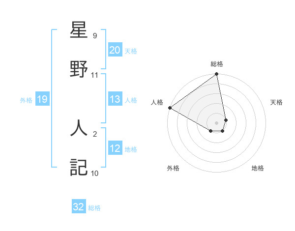 星野 人記さんの総格は32画の5点!