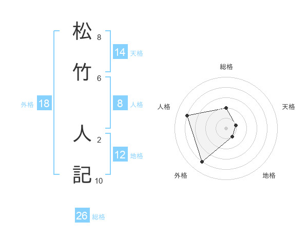 松竹 人記さんの総格は26画の2点!