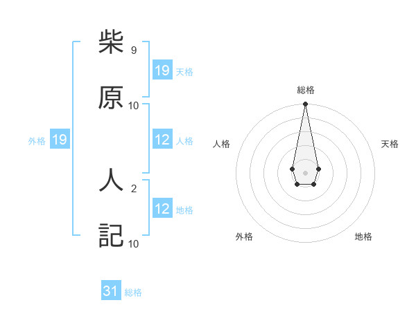 柴原 人記さんの天格は19画の1点!