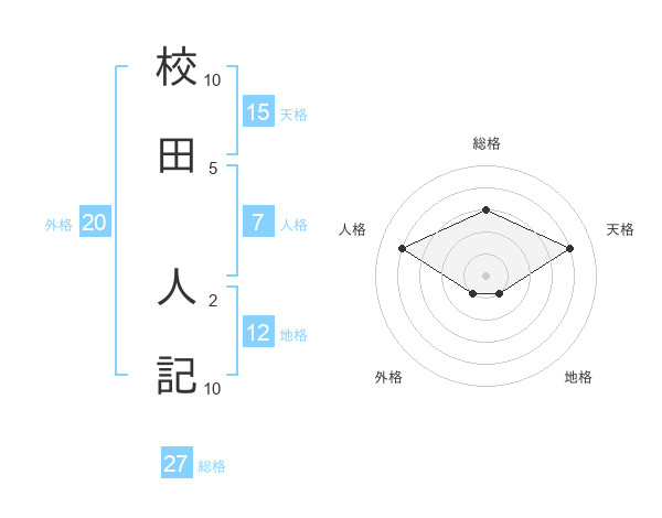 校田 人記さんの総格は27画の3点!
