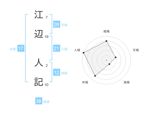 江辺 人記さんの総格は38画の4点!