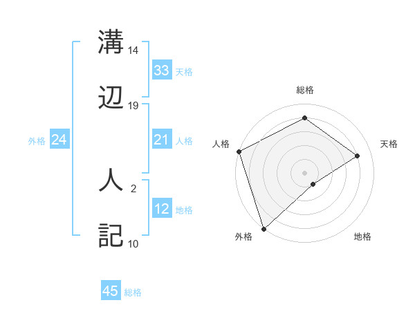 溝辺 人記さんの総格は45画の4点!