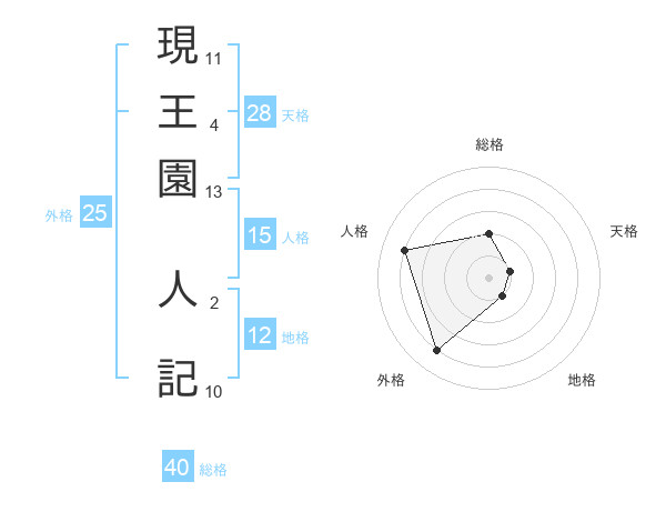 現王園 人記さんの総格は40画の2点!