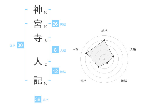 神宮寺 人記さんの総格は38画の4点!
