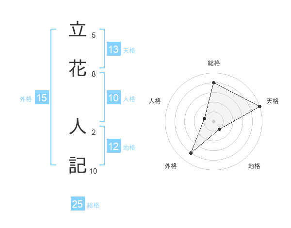 立花 人記さんの天格は13画の5点!