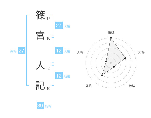 篠宮 人記さんの総格は39画の5点!