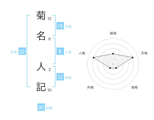 菊名 人記さんの地格は12画の1点!