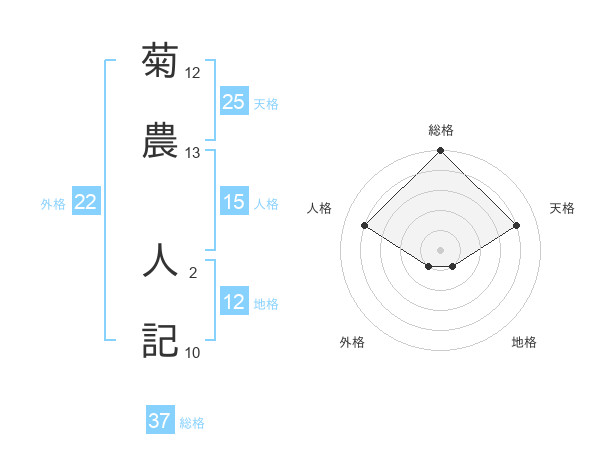 菊農 人記さんの総格は37画の5点!