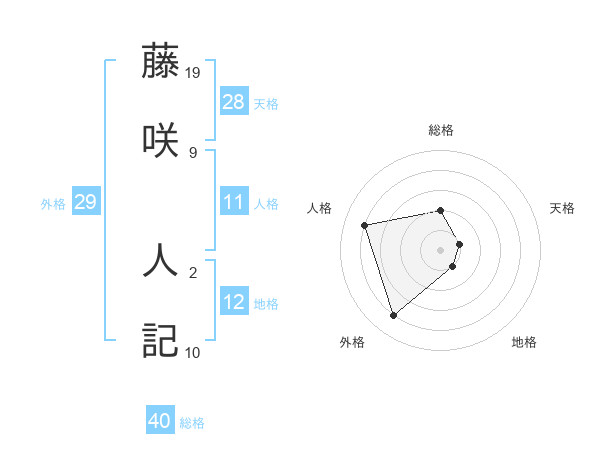 藤咲 人記さんの総格は40画の2点!