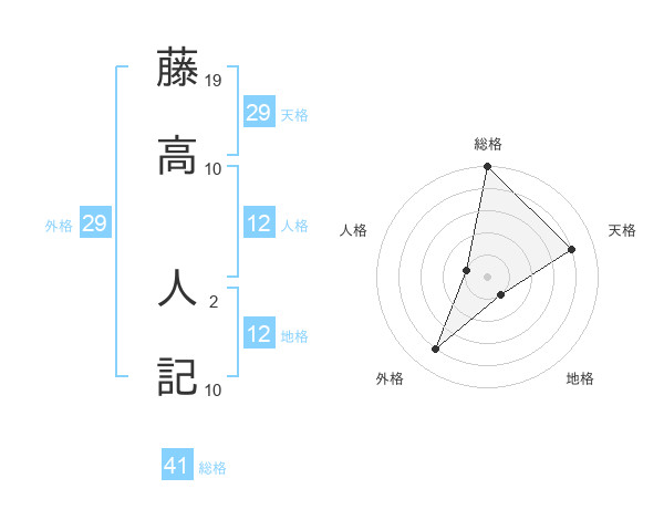 藤高 人記さんの外格は29画の4点!